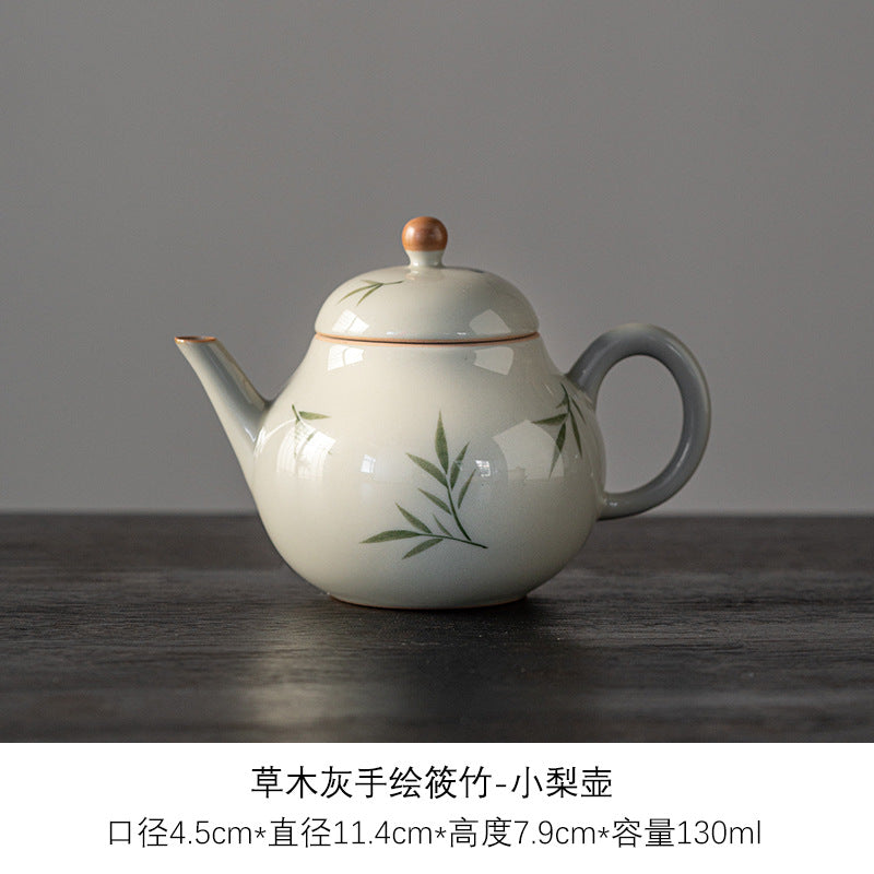 Bingtai hand-painted bamboo pear pot ceramic teapot underglaze color bamboo leaf small pear pot household teapot cute pot
