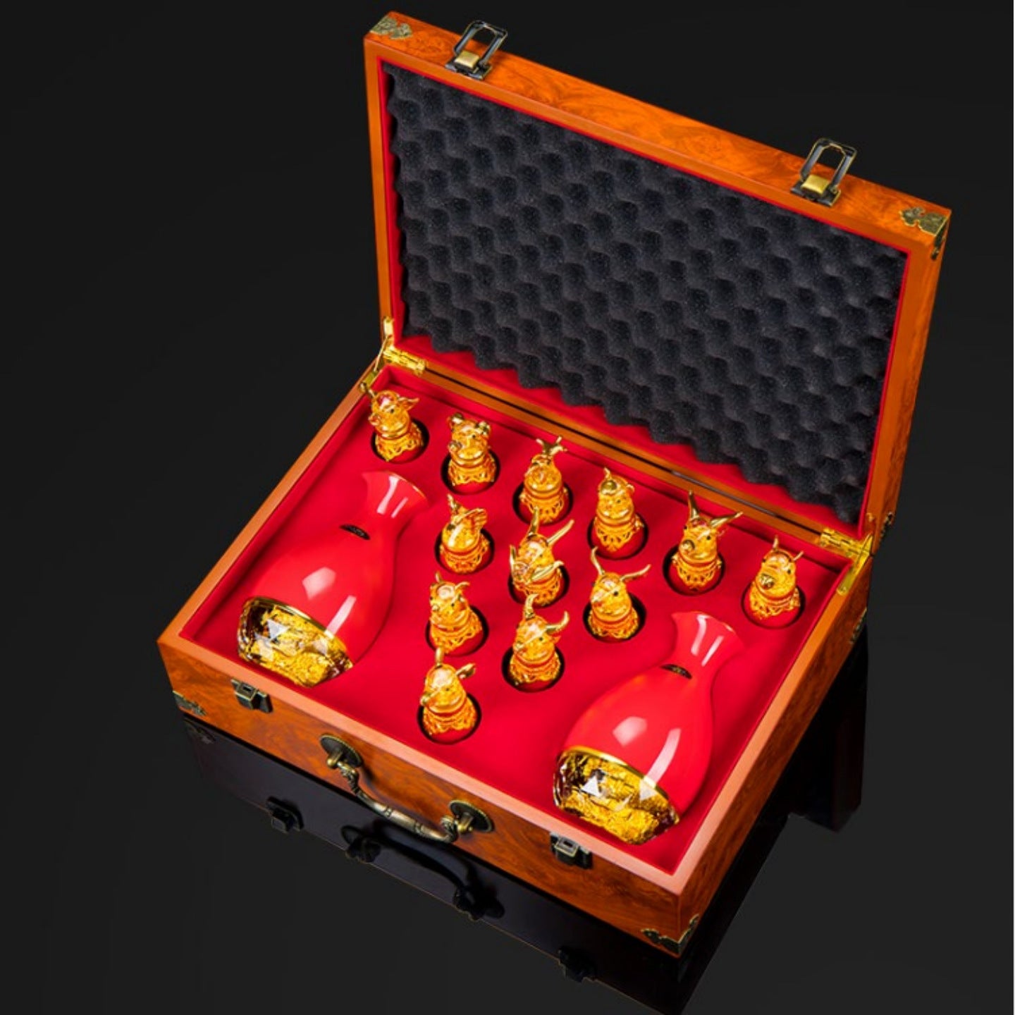 Bone bone china zodiac liquor set Chinese style liquor cup beast head spirits creative wine set gift box set