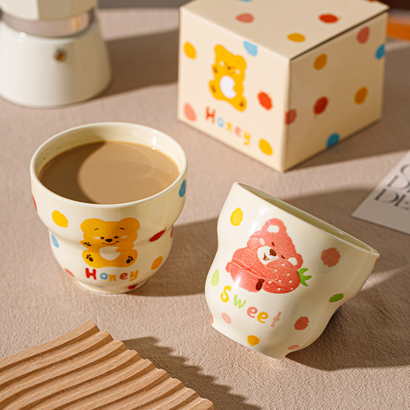This cartoon bear ceramic mug combines playful design with practical features, including high-temperature resistance for safe use with hot beverages. Ideal for coffee, latte, or water, its ergonomic handle ensures comfortable grip. Perfect as a stylish, high-value couple’s cup for everyday household use.