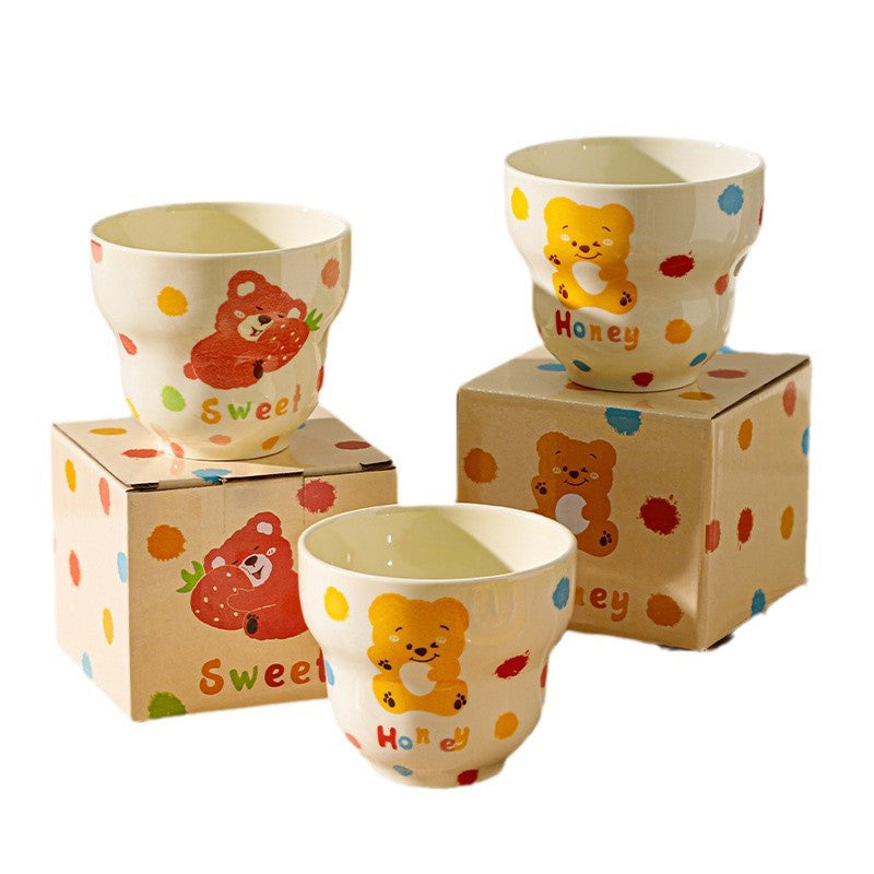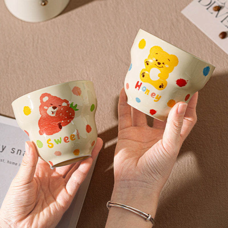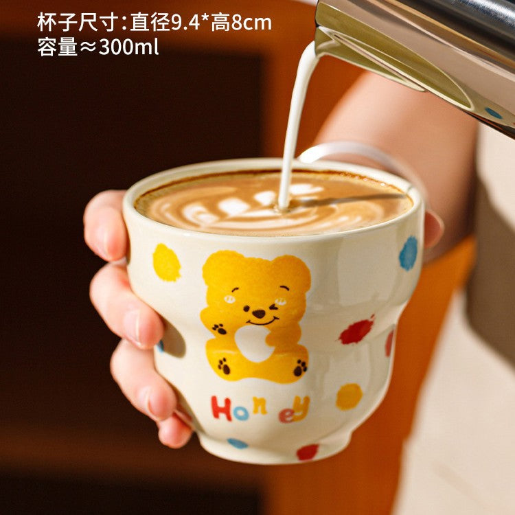 Cartoon bear ceramic mug household high temperature resistant mark water cup holding coffee cup high value latte cup couple cup