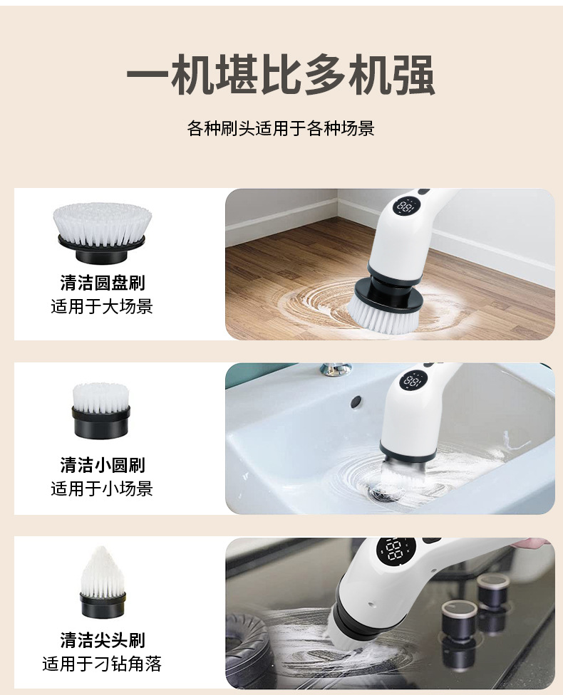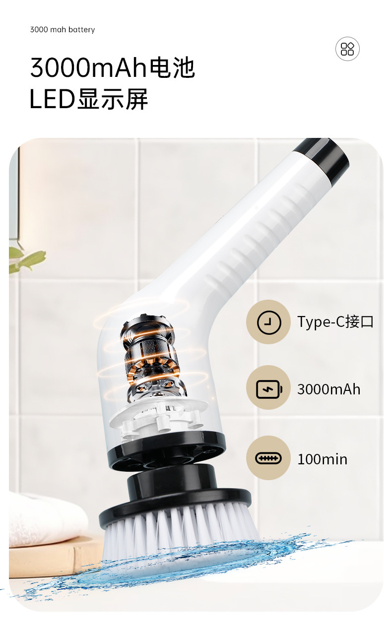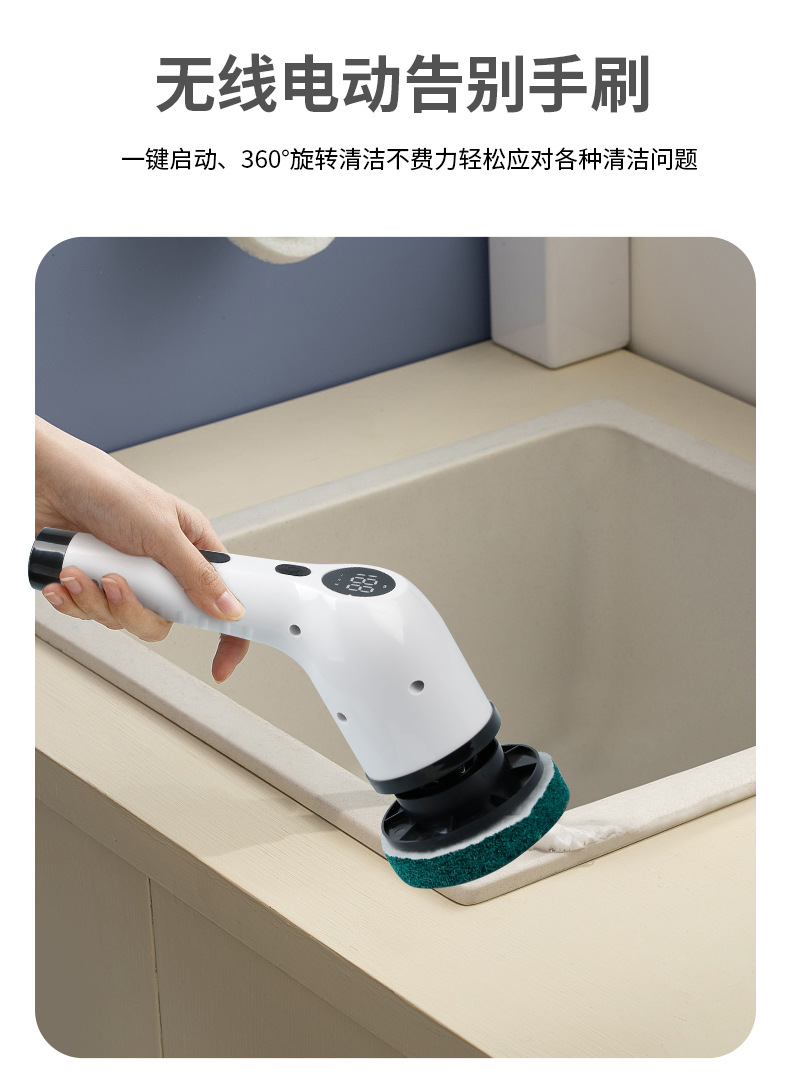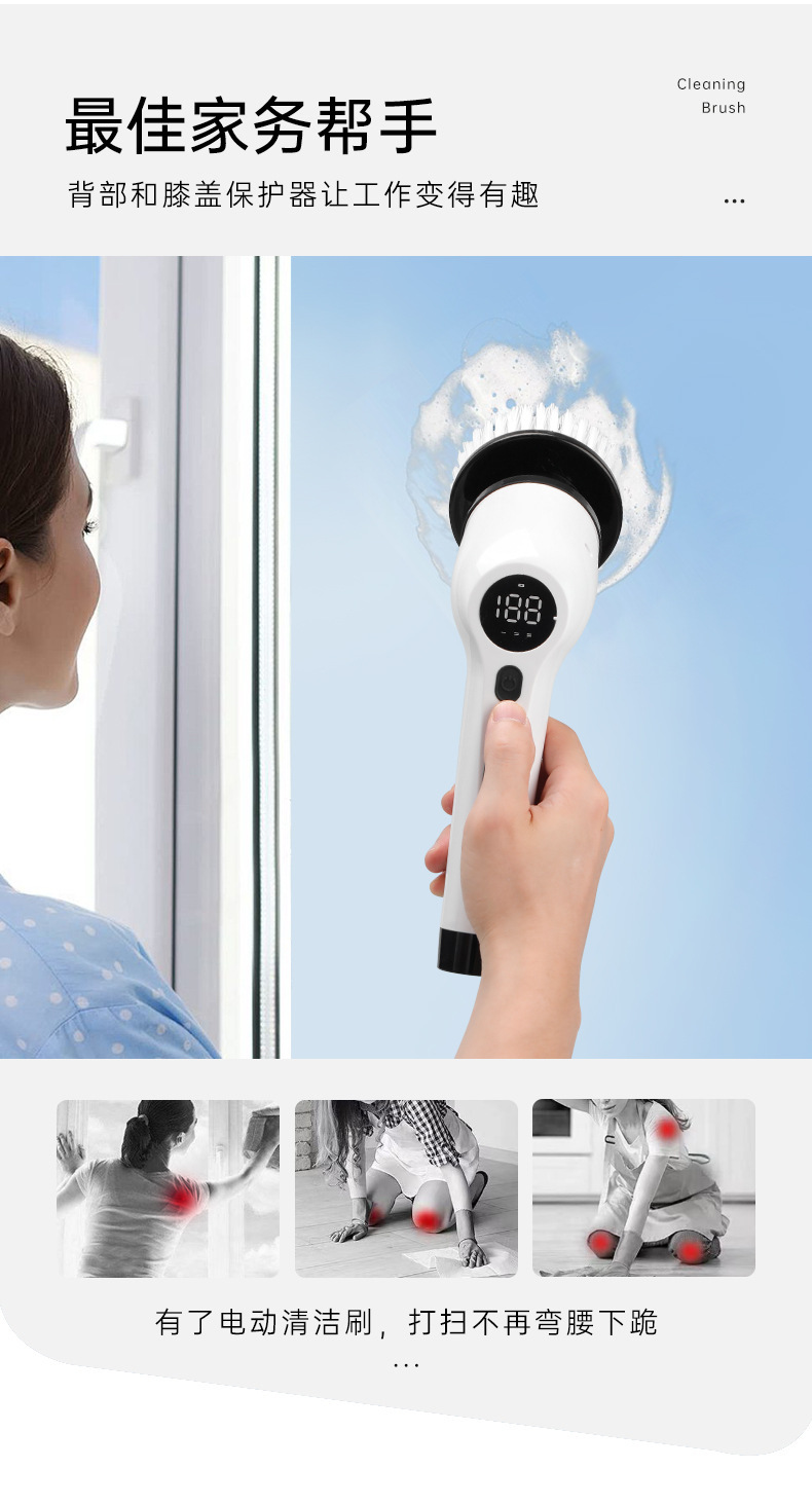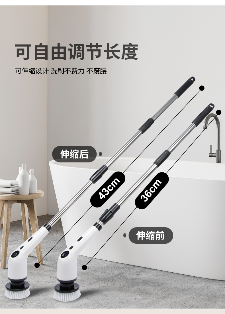 This versatile eight-in-one electric cleaning brush features a long, retractable handle and an LCD digital display for precise control. Designed for both kitchen and bathroom use, it combines multiple brush heads to tackle various surfaces efficiently. Its electric mop function enhances cleaning power, reducing effort and improving results. Ideal for thorough, expert-level cleaning in your home.