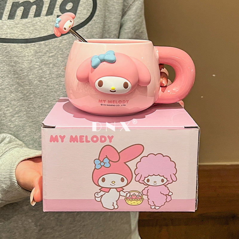 Sanrio ceramic mug cartoon cute mug large capacity kids milk mug with spoon office coffee mug