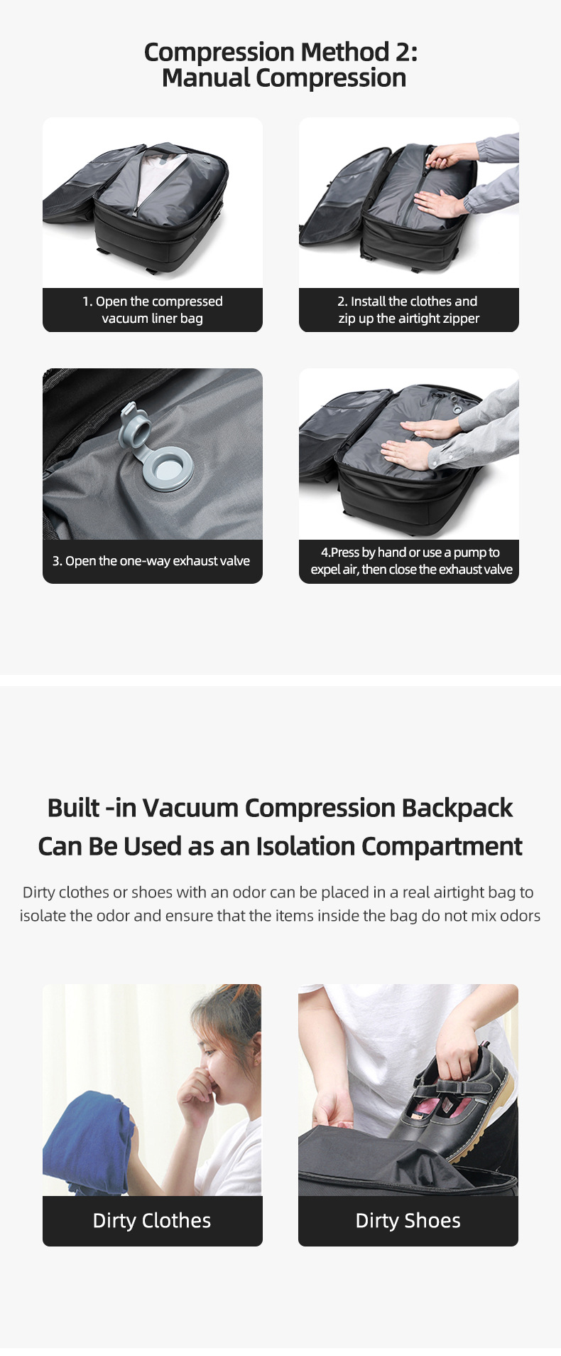 Vacuum Backpack Large Capacity Backpack Waterproof Vacuum Compression Backpack One Button Vacuum Compression Backpack